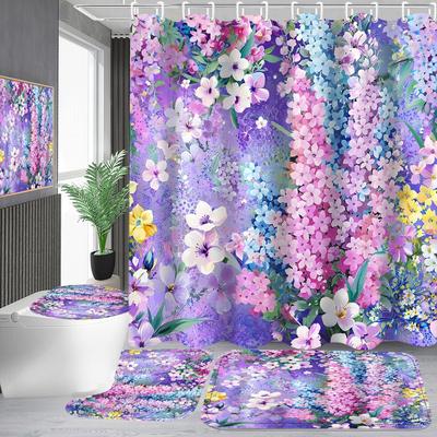 4Pcs Luxury Lavender Shower Curtain Sets Waterproof for Bathroom Non-Slip Bathroom Rugs Lid Toilet Cover Bath Mat