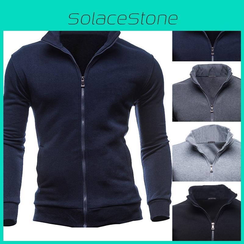 Men's Winter Zip Up Jacket With Stand Collar Ideal For Gym And Outdoor Activities