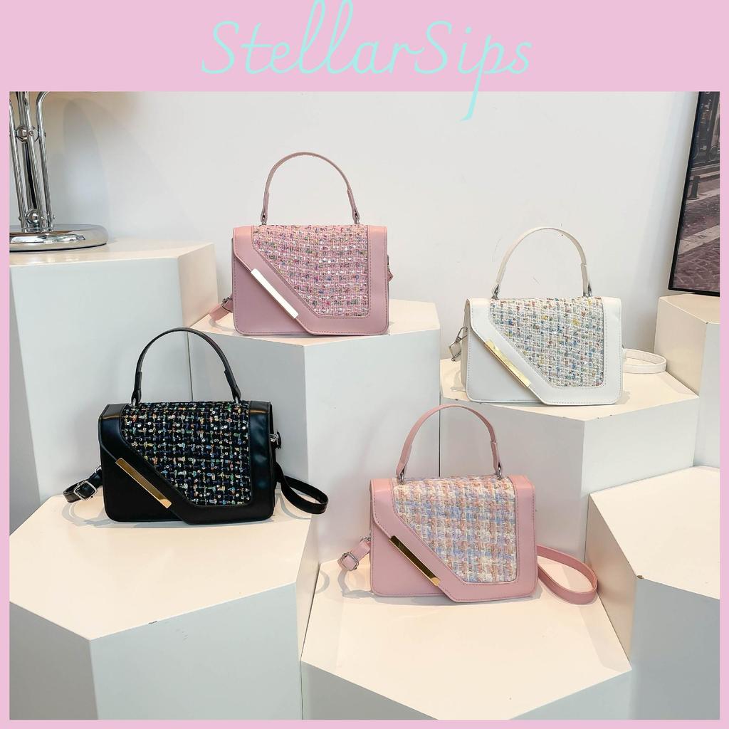 Luxurious Chic Small Square Handbag For Women In Black White Pink Stylish Design