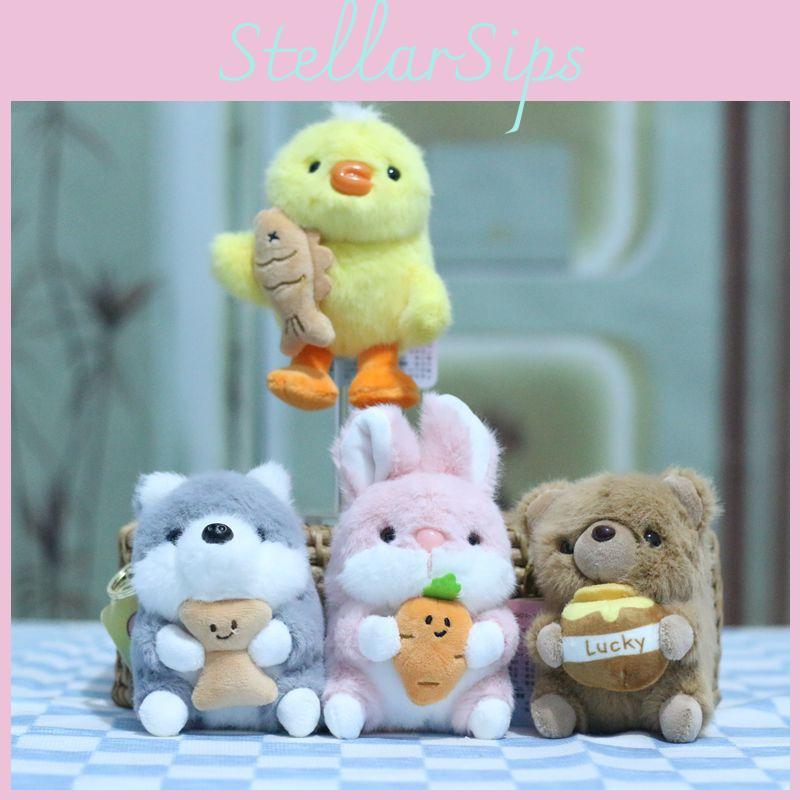 Adorable Design: Featuring a cute Shiba Inu alongside a delightful duck, bear, and rabbit, these plush keychains are perfect for animal lovers and make charming companions.