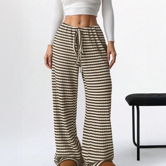 These womens casual pants are crafted from a soft, skin-friendly cotton blend, ensuring all-day comfort. Featuring a stylish striped design and straight-leg cut, they offer a flattering fit that enhances your leg shape.