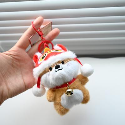 Yousheng Plush Pendant Lion Dance Dog Keychain Soft Plush Doll Ornament with Hat And Bell Pendant Cute Red White Lucky Bag Charm Gift for Festival