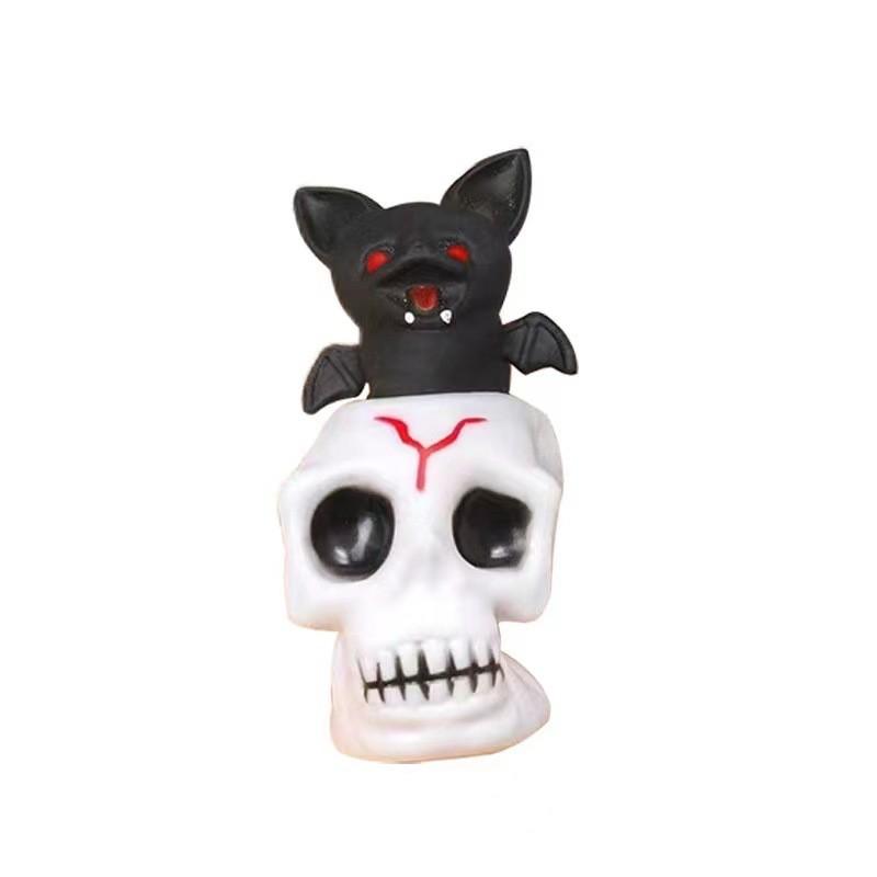 Unique Halloween Skull Stress Relief Toy With Bat Design For Fun Relaxation And Play