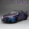 1:24 GTR-R34 Sports Car Model Toy Music Light Pull Back Diecast Metal Shock Absorption Supercar Models Home Decor Decoration