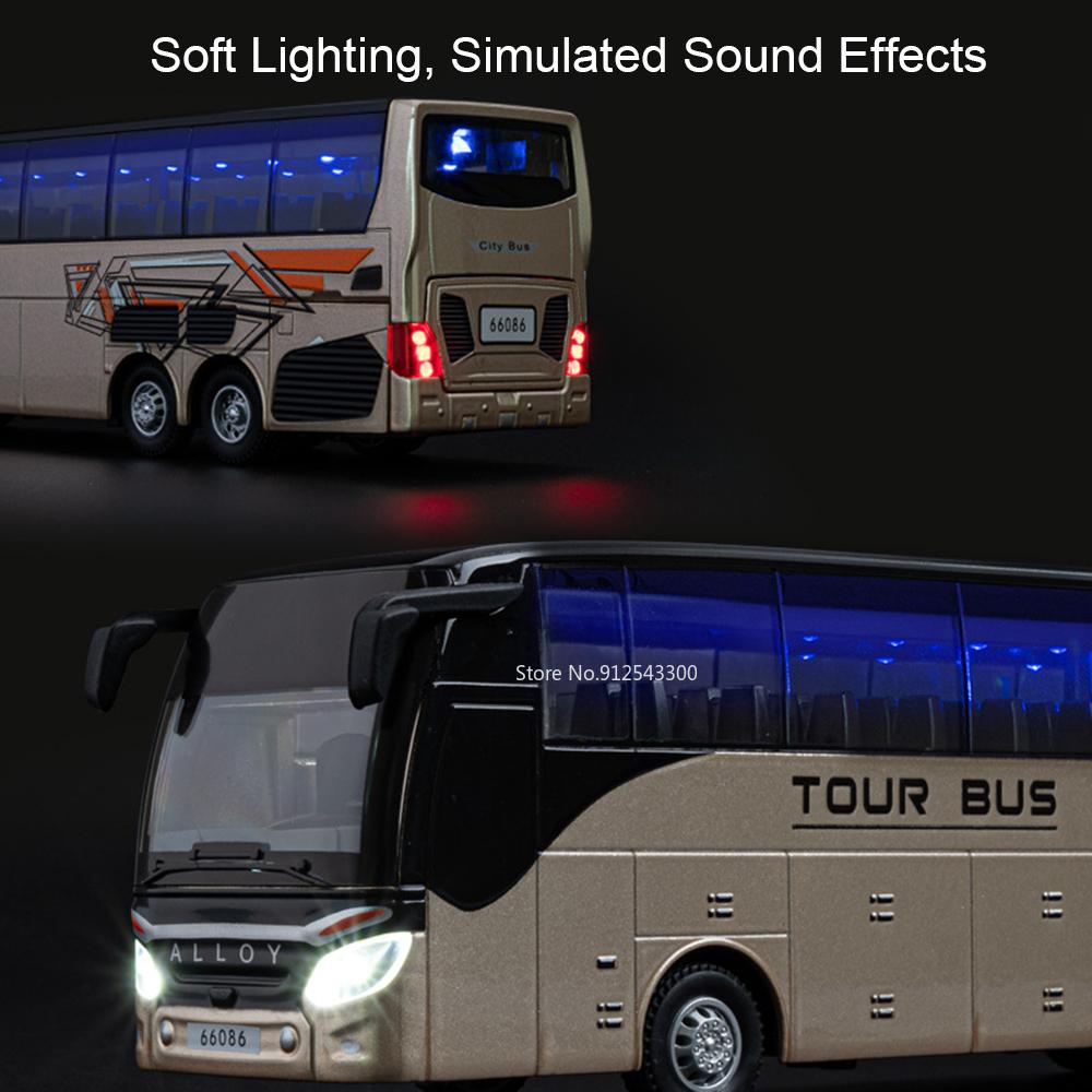1:30 Business Bus Model Toy Car Metal Die-cast Music Light Doors Opened Long-distance Single-layer Truck Models Holiday Gifts