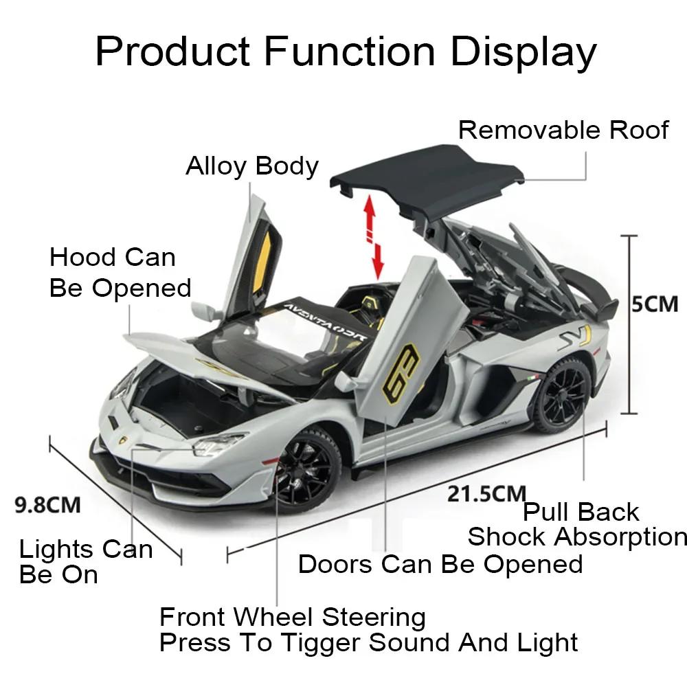 1:24 Aventador SVJ63 Revuelto Toy Car Model Alloy Diecast Sound Light Pull Back Doors Opened Vehicles Models Toys Collection