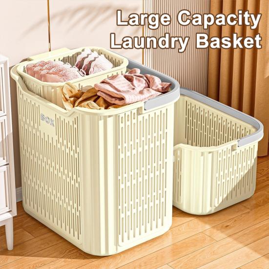 Laundry Basket Breathable Mesh Storage Basket with Handle Dirty Clothes Basket with Built-In Underwear Basket for Clothes Toys Bathroom Laundry