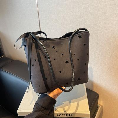 Vintage Large Capacity Shopping Handbags Women Autumn Winter Commuter Shoulder Bag Chic Star Pattern Lady Tote Bag