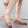 Fashion FHANCHU 2025 New Soft PVC Sandals,Wedges Jelly Shoes,Crystal Summer Heels,Hollow Out,Round Toe,Gold,Silver,Size 36-40,Dropship