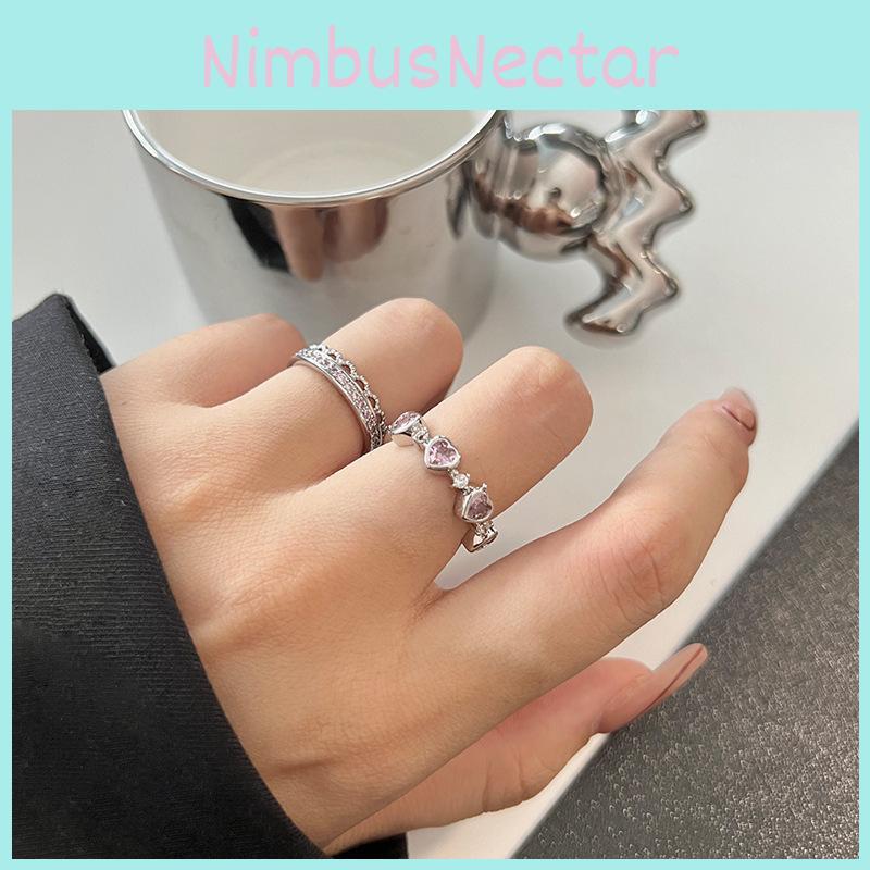 Trendy Geometric Pink Heart Adjustable Ring For Women Fashionable Distinctive Copper Accessory