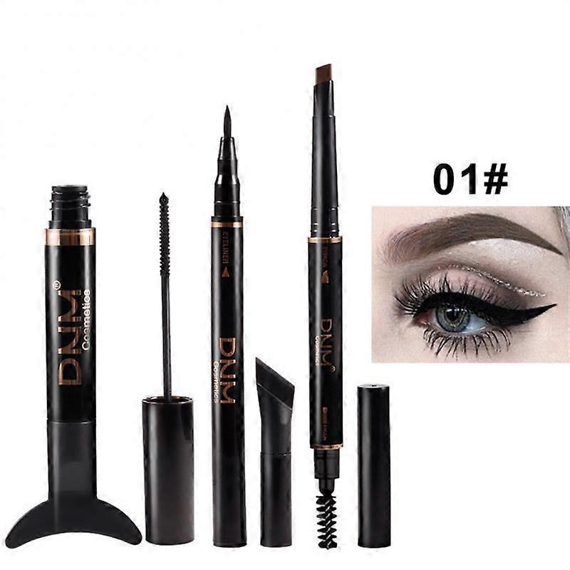 One box contains mascara, eyebrow pencil and eyeliner in a variety of colors to basically meet your eye makeup needs.
