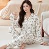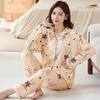 Spring and Autumn New Floral Double Pocket Imitation Cotton Pajamas Loose Large Size Mother Loungewear Long Sleeves Trousers Set