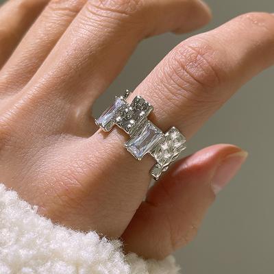 Explosive Geometric Square Zircon Niche Simple Ring Light Luxury High Sense Personality Index Finger Ring Temperament Versatile Ring