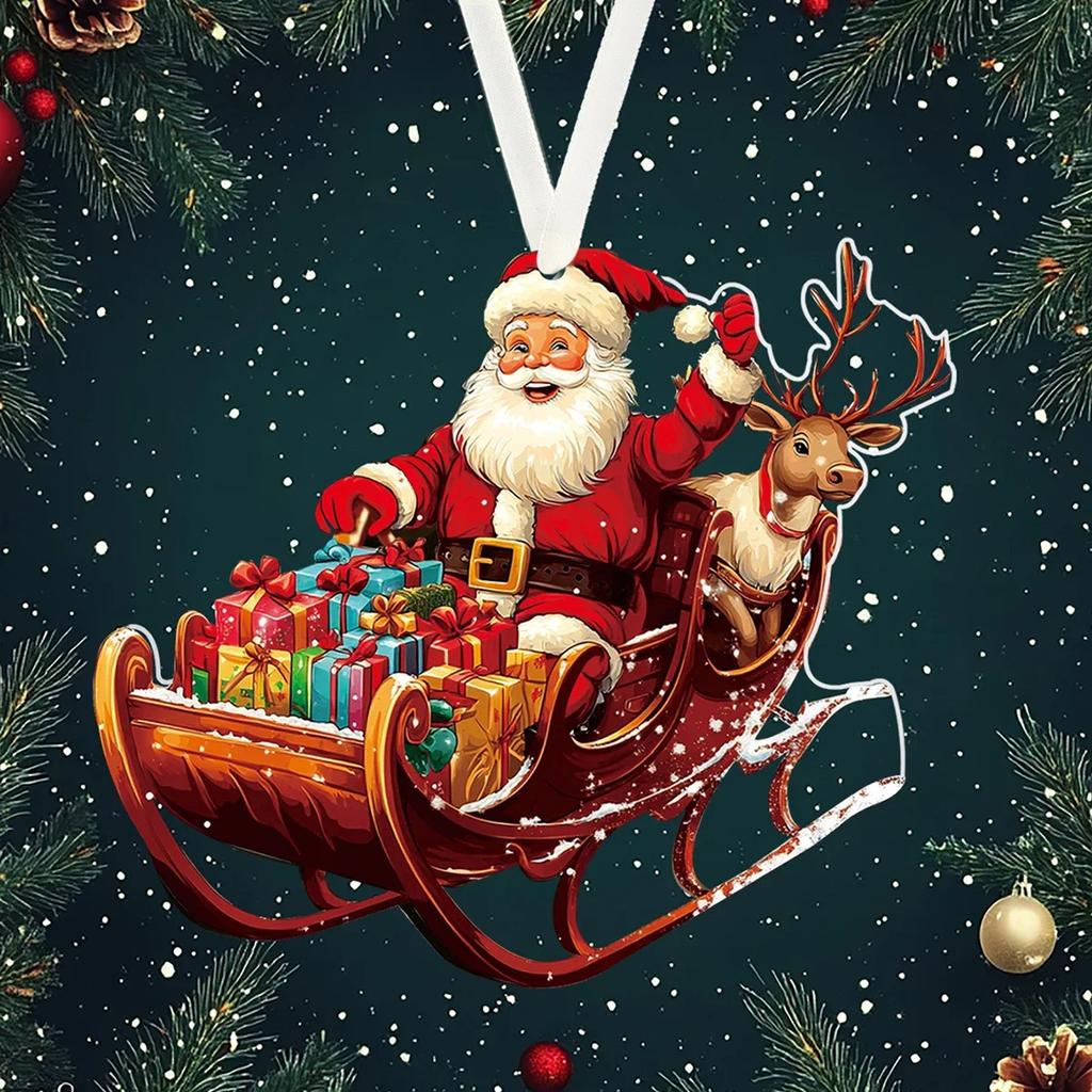 Acrylic Santa Claus Elk Sleigh Pendant Ornaments Xmas Tree Hanging Decor for Home Christmas Party New Year Decoration