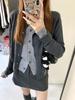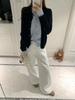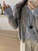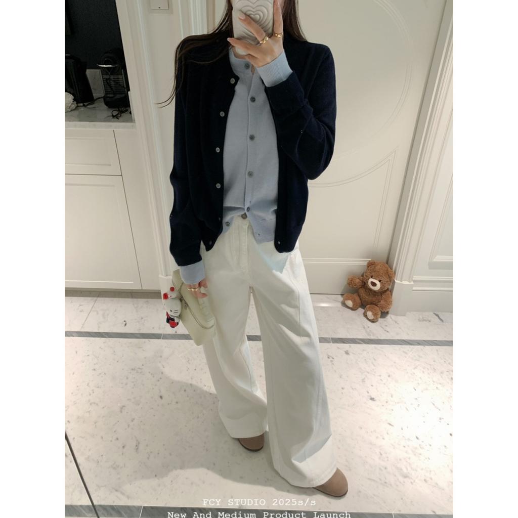 Korean Retro White Navy Blue Fake Two-piece Long-sleeved Knitted Cardigan Women's Early Autumn Versatile Fashion Sweater Jacket
