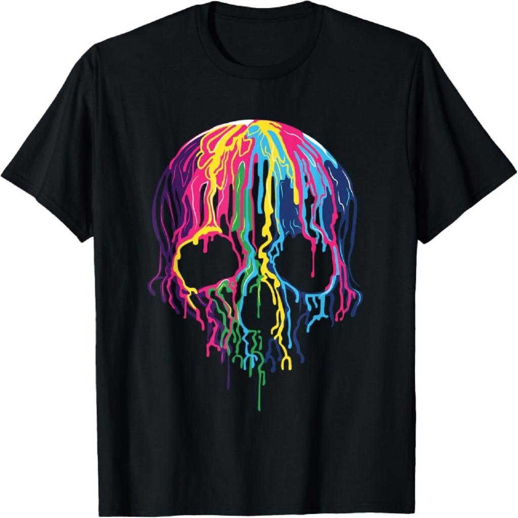 Colorful Melting Skull Art Graphic Halloween T-Shirt