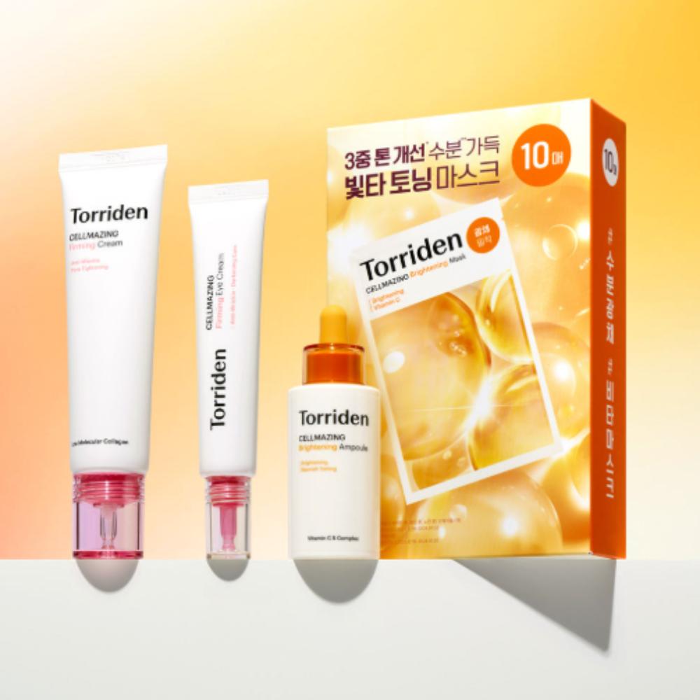 Torriden Cellmazing set, Torriden 4-piece skincare, Vita ampoule 30ml, collagen firming cream 60ml, Torriden eye cream 30ml, Vita mask 10 sheets, Korean brightening set, firming skincare routine, K-beauty collagen products