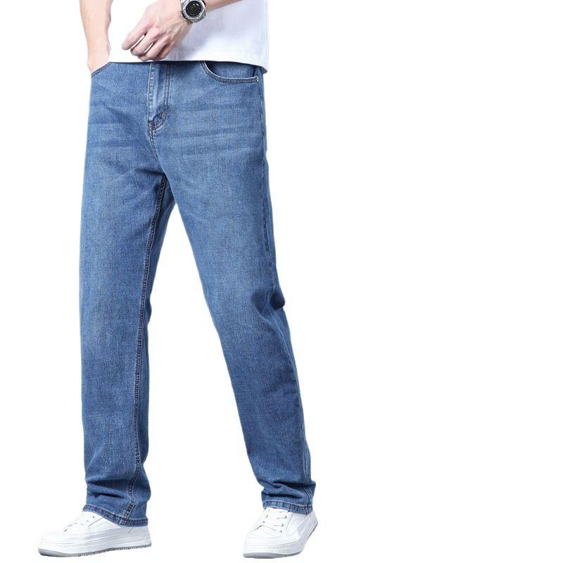 JYL Thin Jeans Men's Wide Straight Hair Wide Elastic Trousers