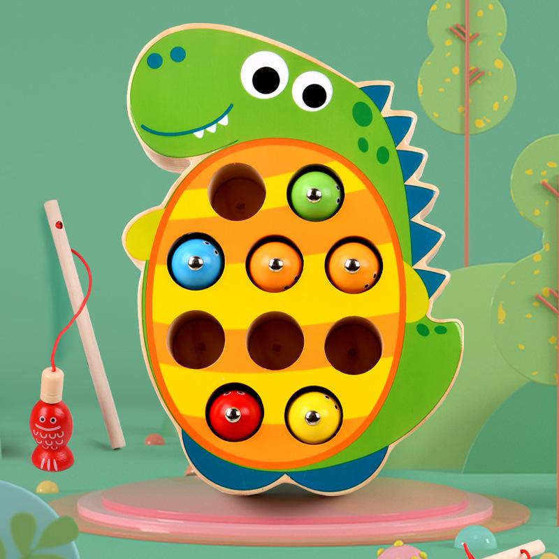 New Kitten Frog Dinosaur Fishing Game Children's Puzzle Early Education Hand-eye Coordination Wooden Toy