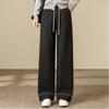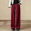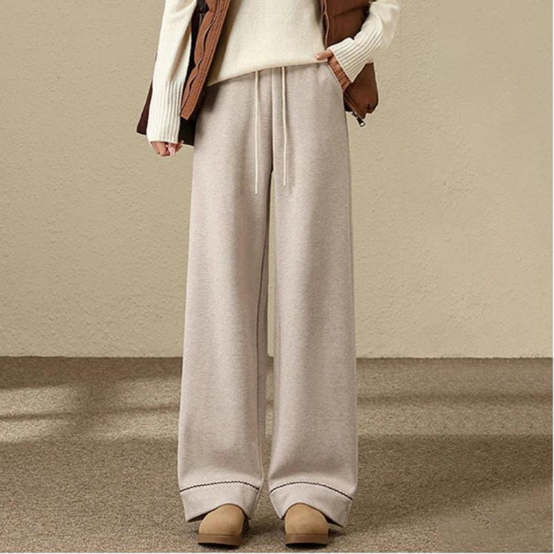 Women Cashmere Glutinous Rice Pants Autumn Winter Style High Waist Drooping Versatile Fleece Lined Floor Length Wide Leg Pants