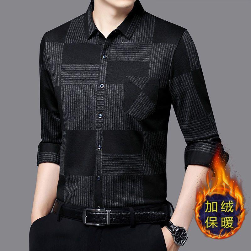 Autumn and Winter Men's Long-sleeved Velvet Thickened Shirt Business Casual Plaid Shirt Top