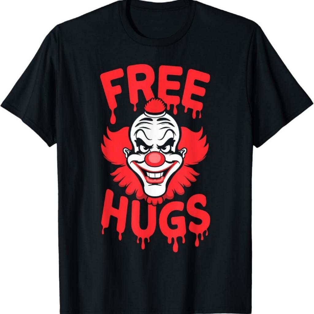 Free Hugs Scary Clown Costume Kids Adults Halloween Horror T-Shirt
