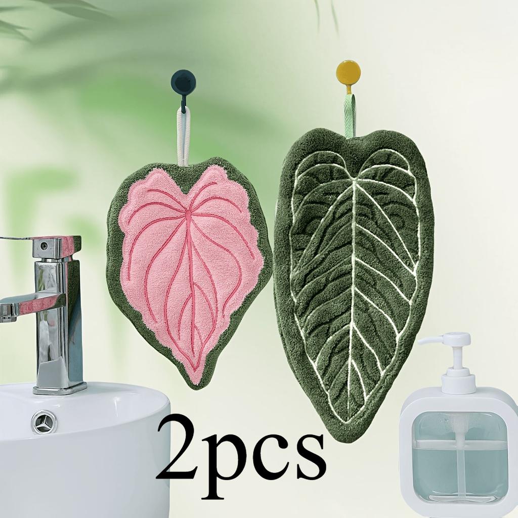 2pcs Coral Fleece Hand Towels ,Plant Leaf Design,Hanging Convenient ,Strong Absorbency and Quick Drying,Cute and Soft ,Kitchen Bathroom Hand Towels