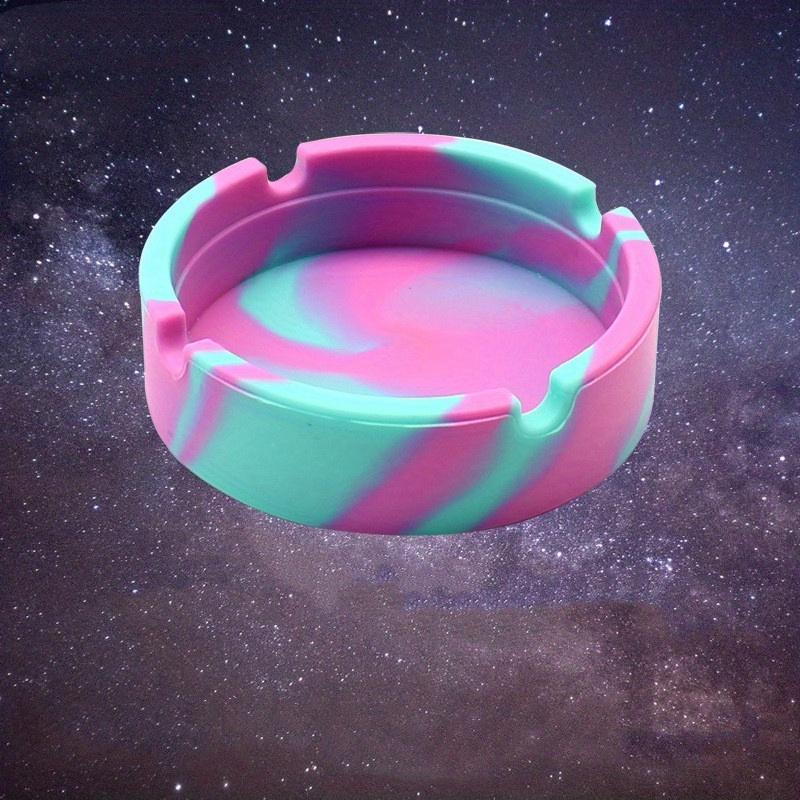 1pc, Portable Silicone Ashtray - Durable, Heat-Resistant & Easy-Clean, Luminous Tie-Dye Design for Home, Car, and Travel Use