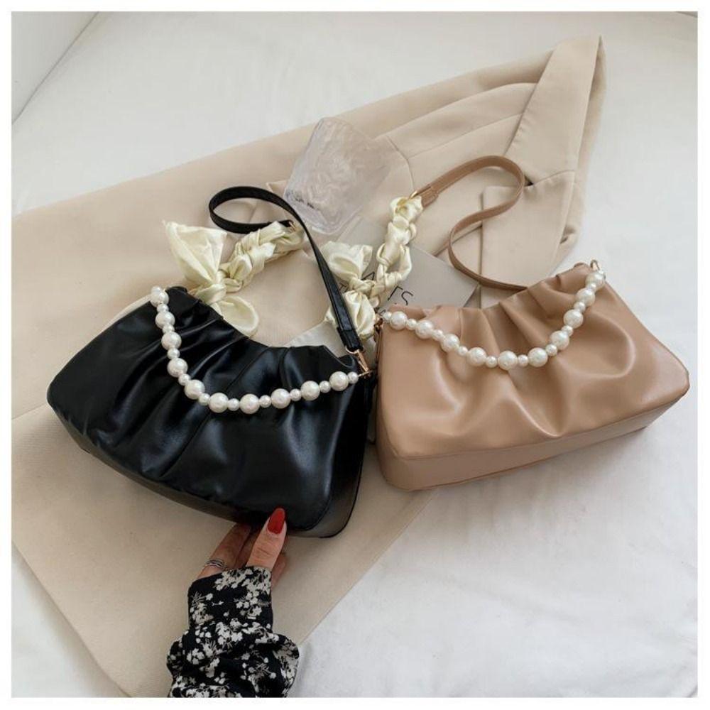 Fashion Pleated Shoulder Bag PU Leather with Pearl Cloud Underarm Bags Small Handbags Women Purse