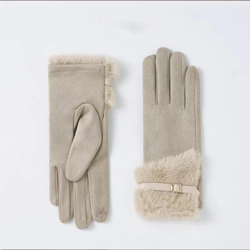 New Women Autumn and Winter Warm Gloves Korean Version Plush Fashionable Temperament Gloves Touch Screen Windproof Suede Gloves