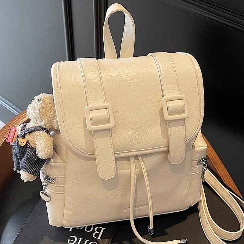 Large Capacity Casual Backpack Women's New College Style Student Schoolbag Simple Leather Travel Backpack