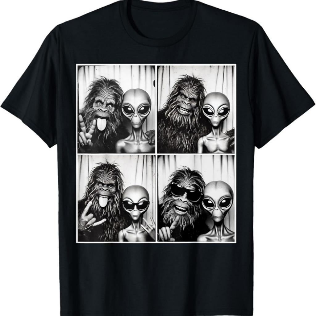 Funny Photobooth Photo Sasquatch UFO Bigfoot And Alien T-Shirt