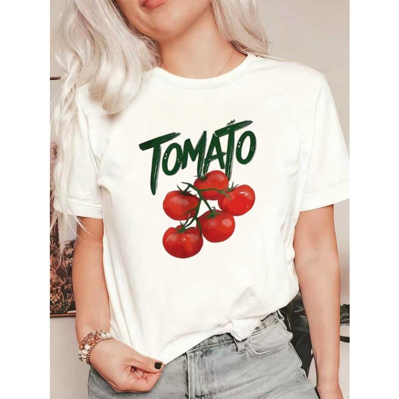 Oversized T Shirt Black Tomato Print With Cherry Tomatoes And Text For Casual Wear