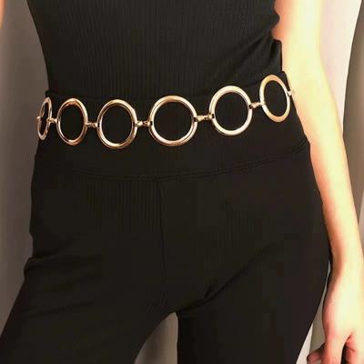 Spring And Summer Elegant Gold Women'S Waist Chain Dress Decorative Metal Large Ring Belt Women