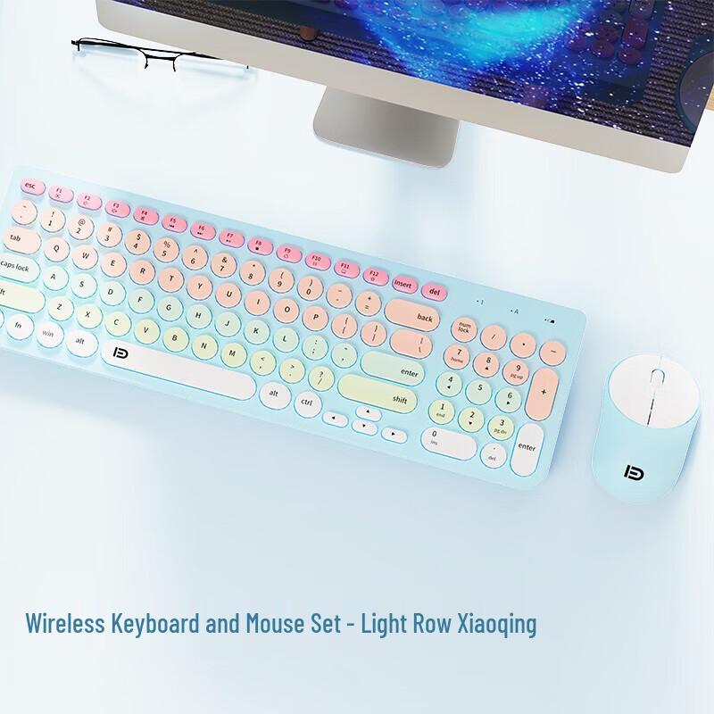 Fude IK6632 Retro Color-Block Low-Noise Wireless Keyboard & Mouse Combo