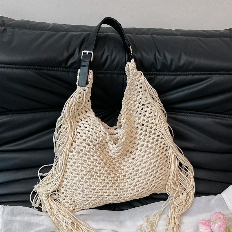 Spring New Product Simple Design Hollow Woven Tote Bag Casual Seaside Resort Style One-shoulder Beach Bag