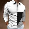 Men's Cross-border Zipper Casual Slim Fit Men's Color Blocked Digital Printed Long Sleeved Polo
