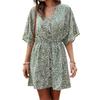 High waist dress is floral printed and v neck design, making you look very sweet.