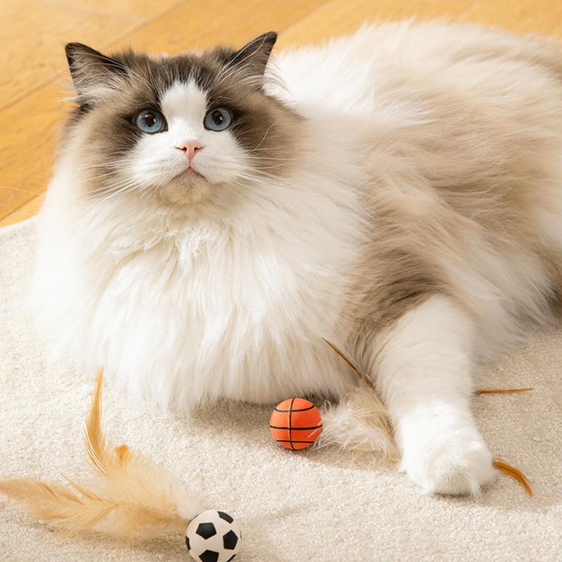 Cat Self-sex Elastic Toy Ball, Chicken Feather Basketball Ball Interactive Boredom Throw Cat Toy Toys Cat Fun Artifact Pet Toys