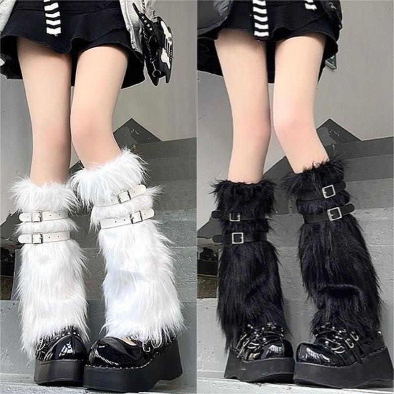 Soft Fluffy Leg Warmers Y2K Girls Winter Faux Fur Thigh High Socks Harajuku Punk Goth Aesthetic Cozy Footwear For Women