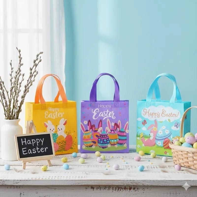 Easter Gift Bags with Handles Bunny Theme Non-Woven Bags for Easter Party Supplies, Birthday Gifts and Gift Wrapping