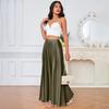 Elegant satin A-line slimming midi skirt for women