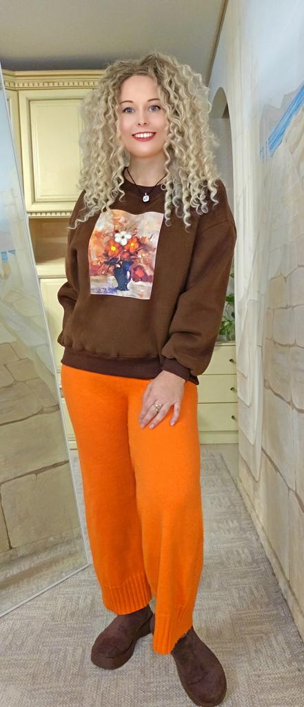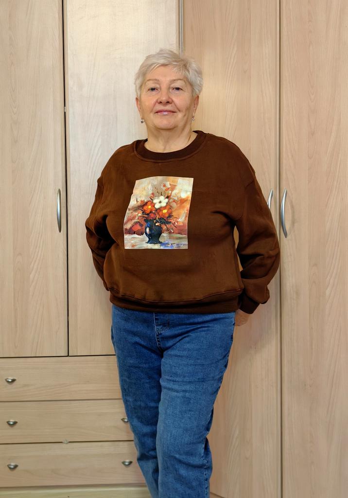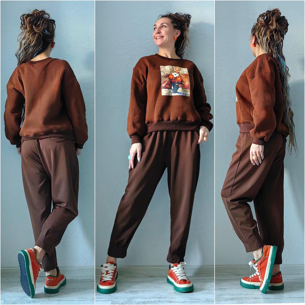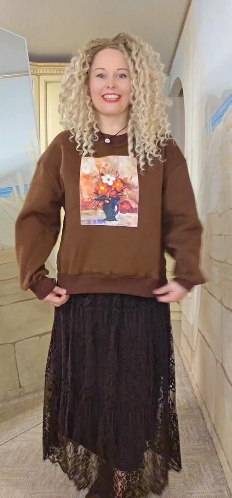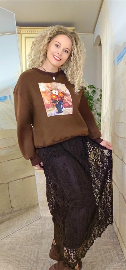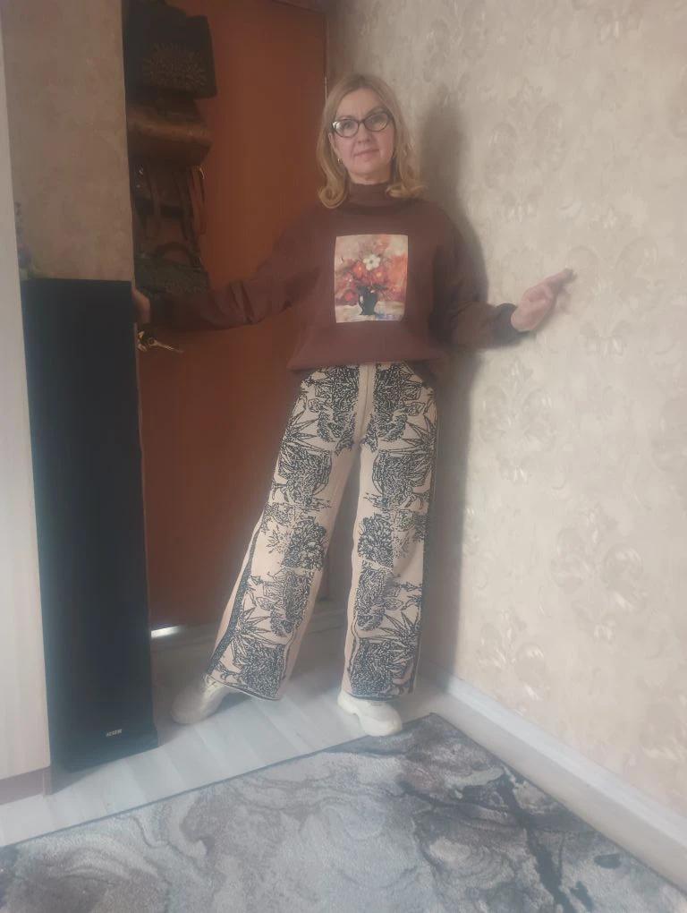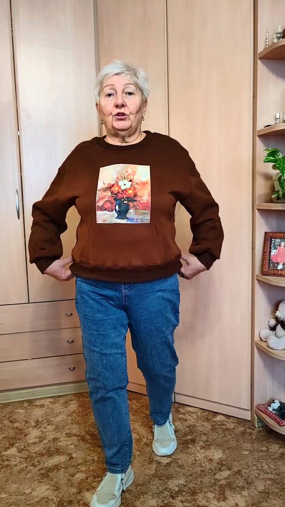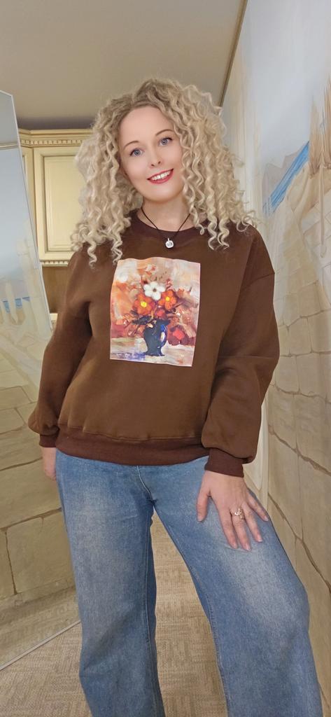 Korean Style Autumn Winter Women Brown Hoodies O Neck Flower Print Casual Loose Fleece Pullover Baggy Vintage Ladies' Basic Sweatshirt