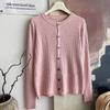 Women's Thin Knit Cardigan Spring and Summer Solid Color Round Neck Knit Cardigan