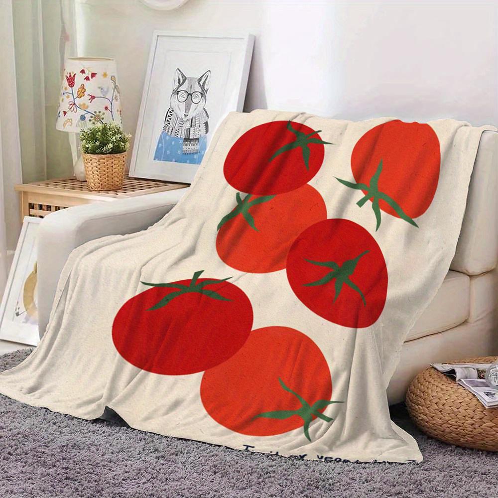1pc Sofa Throw Blanket Funny Tomato Design, Soft Beige Background with Red Tomatoes for Living Room Kitchen Dorm