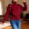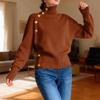 Women's Loose Comfortable Casual Fashion Knit Sweater With Buttons And High Neck