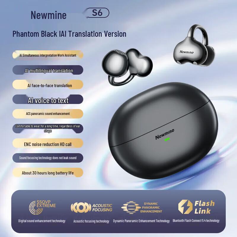 Newmen S6 AI Smart Translation Ear-clip Bluetooth Headset