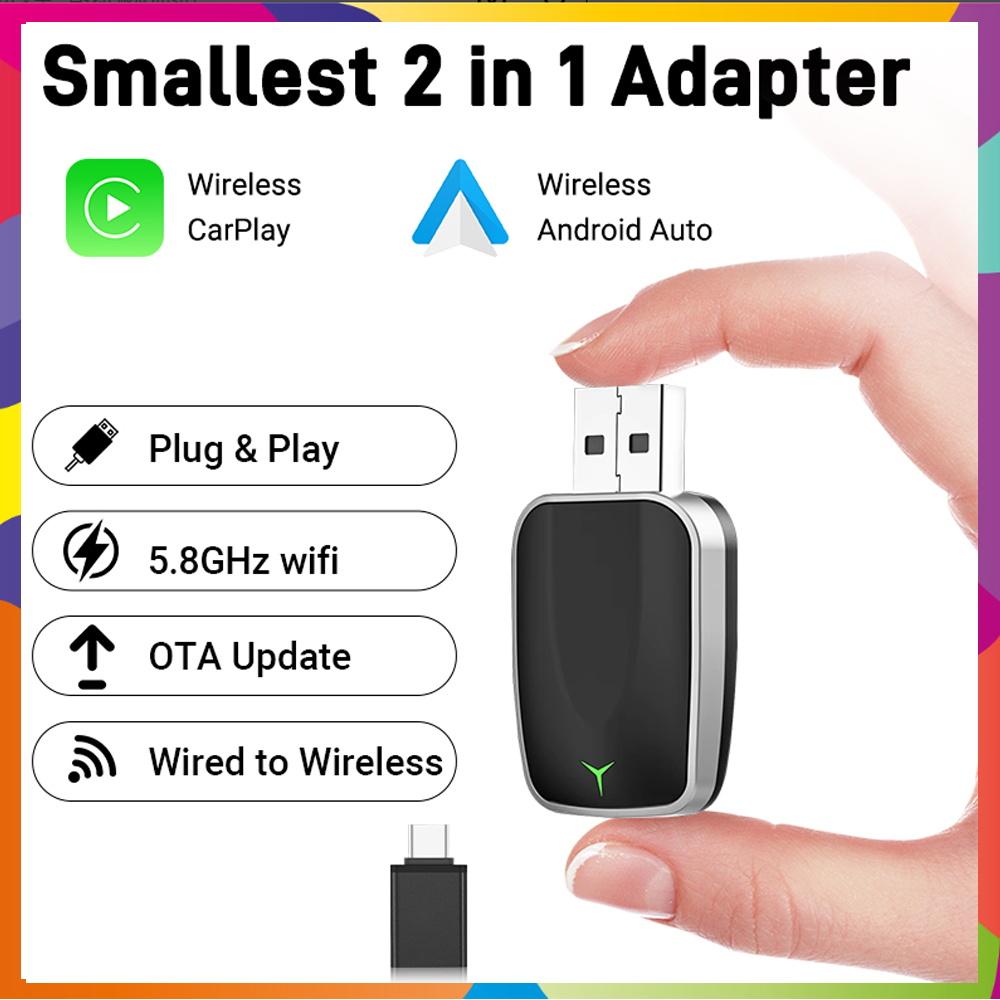 2025 New Upgrade 2in1 Mini Wireless CarPlay Adapter Convert Wired To Wireless 5GHz WiFi & Low-Latency Streaming Plug & Play Box