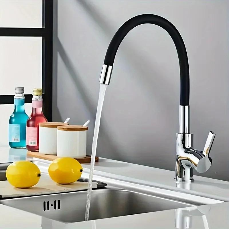 Kitchen Sink Faucet Silicone Hot and Cold Water Faucet Universal Rubber Tube Tap Black 360° Rotating Kitchen Accessories