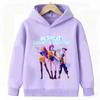 Purple Sweatshirt KPop Demon Hunter Rumi Derpy Cartoon Warm and Thick, Fashionable Casual Top Printed Hoodie for Boys and Girls